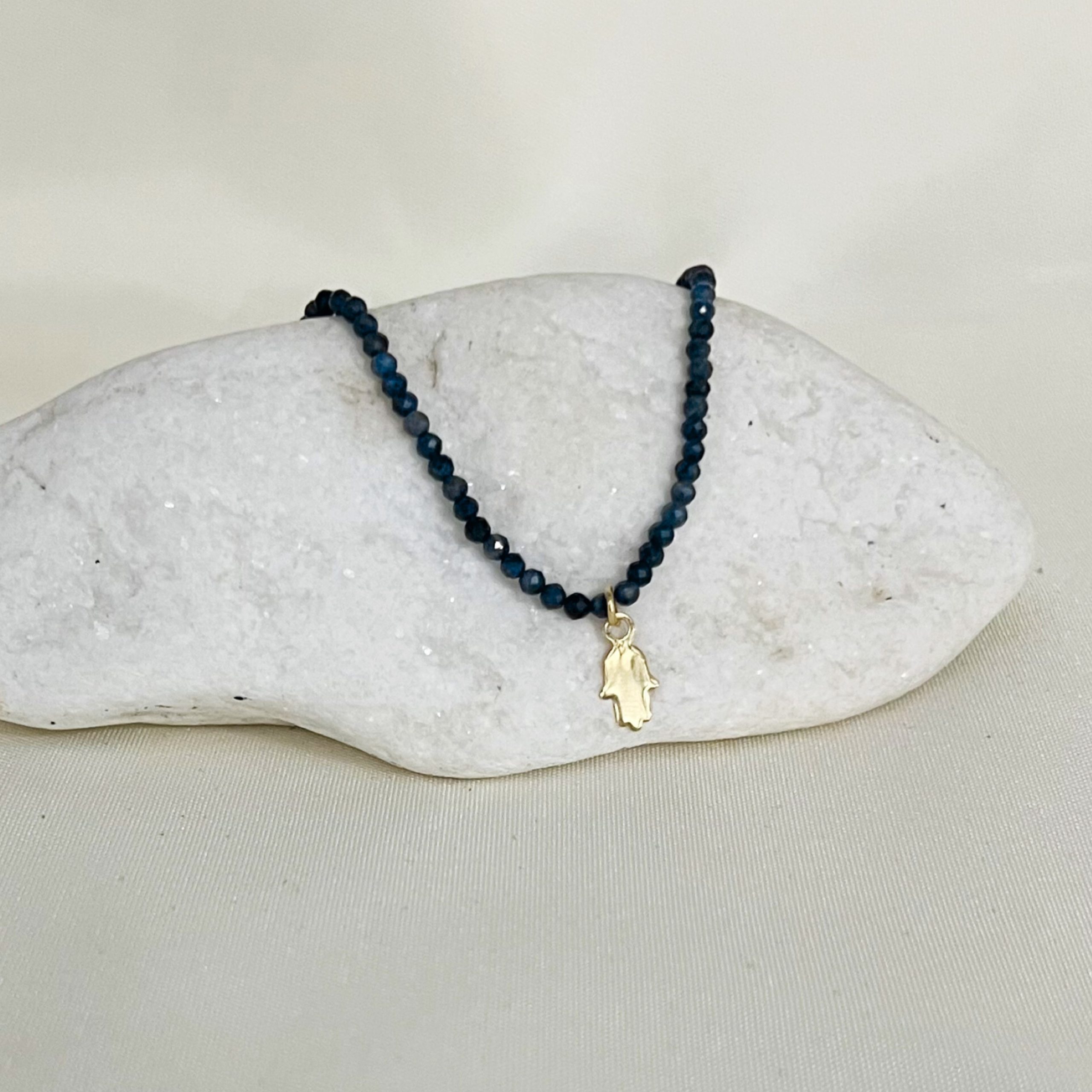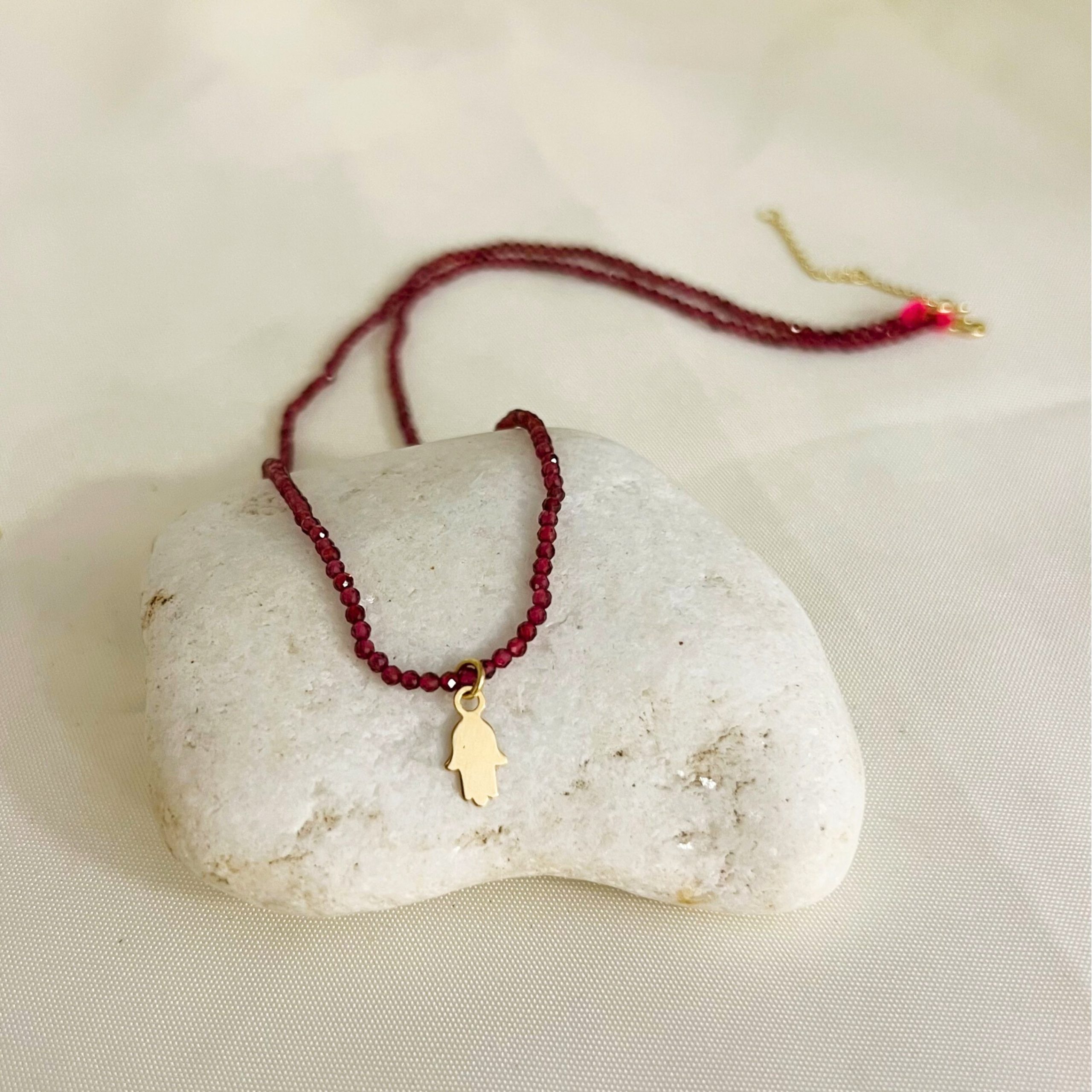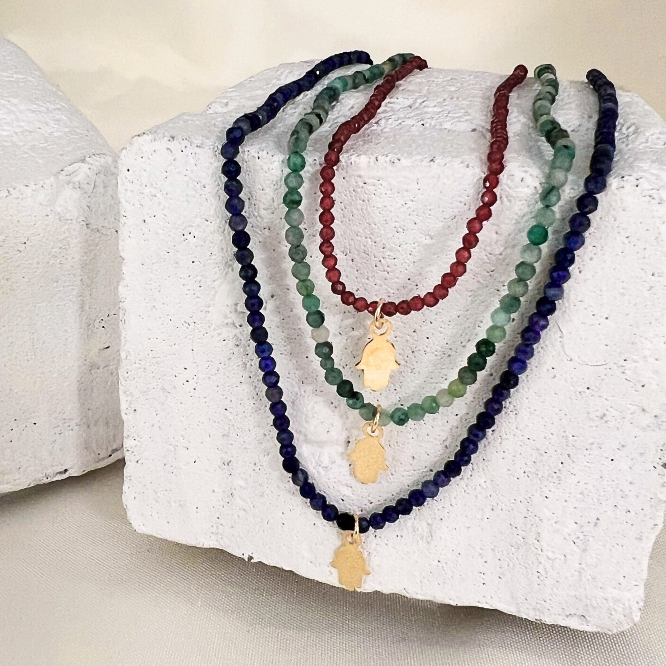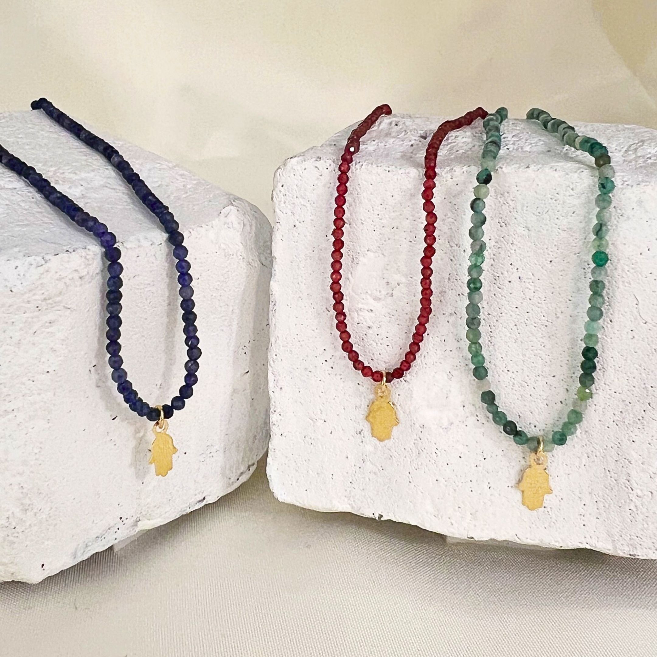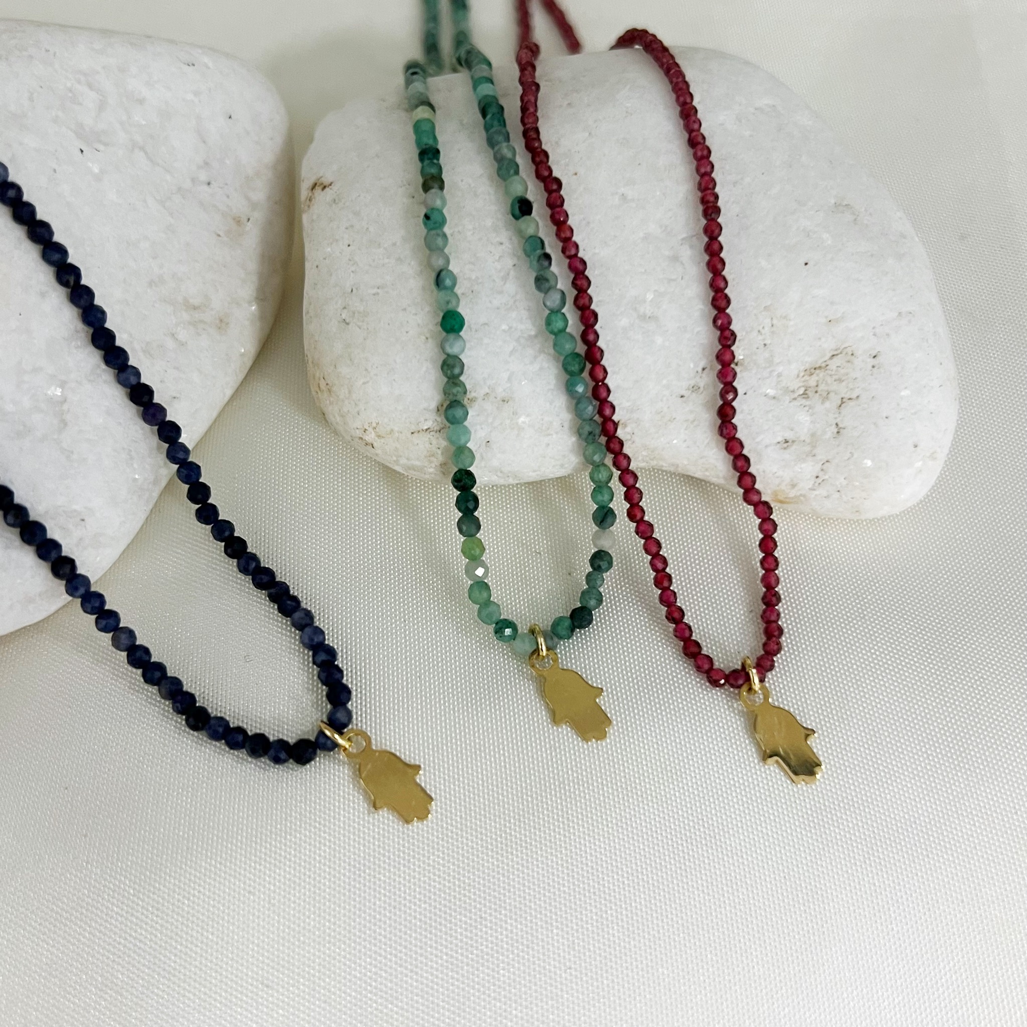 שרשרת אמרלד/ספיר/גרנט חמסה זהב 14 קראט.