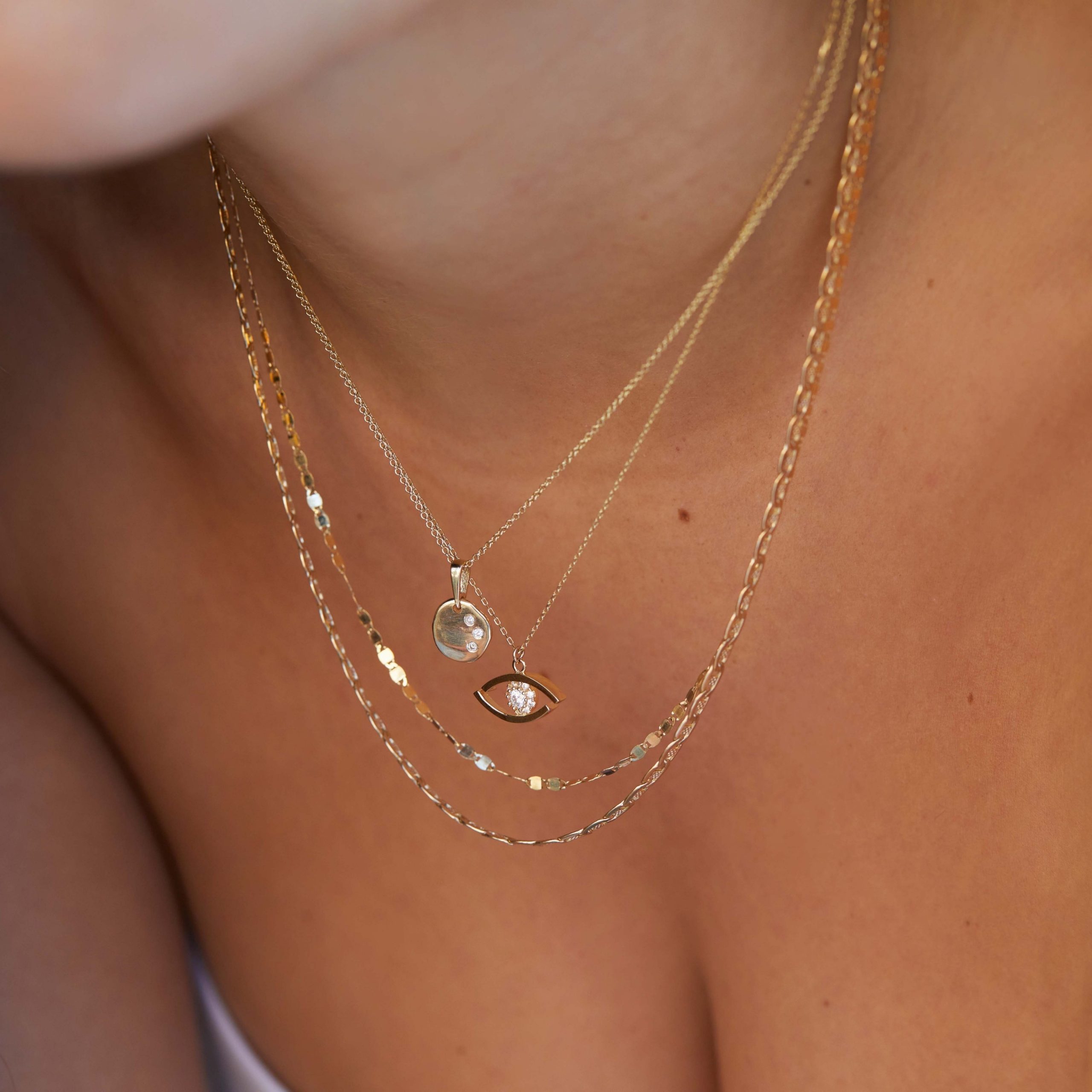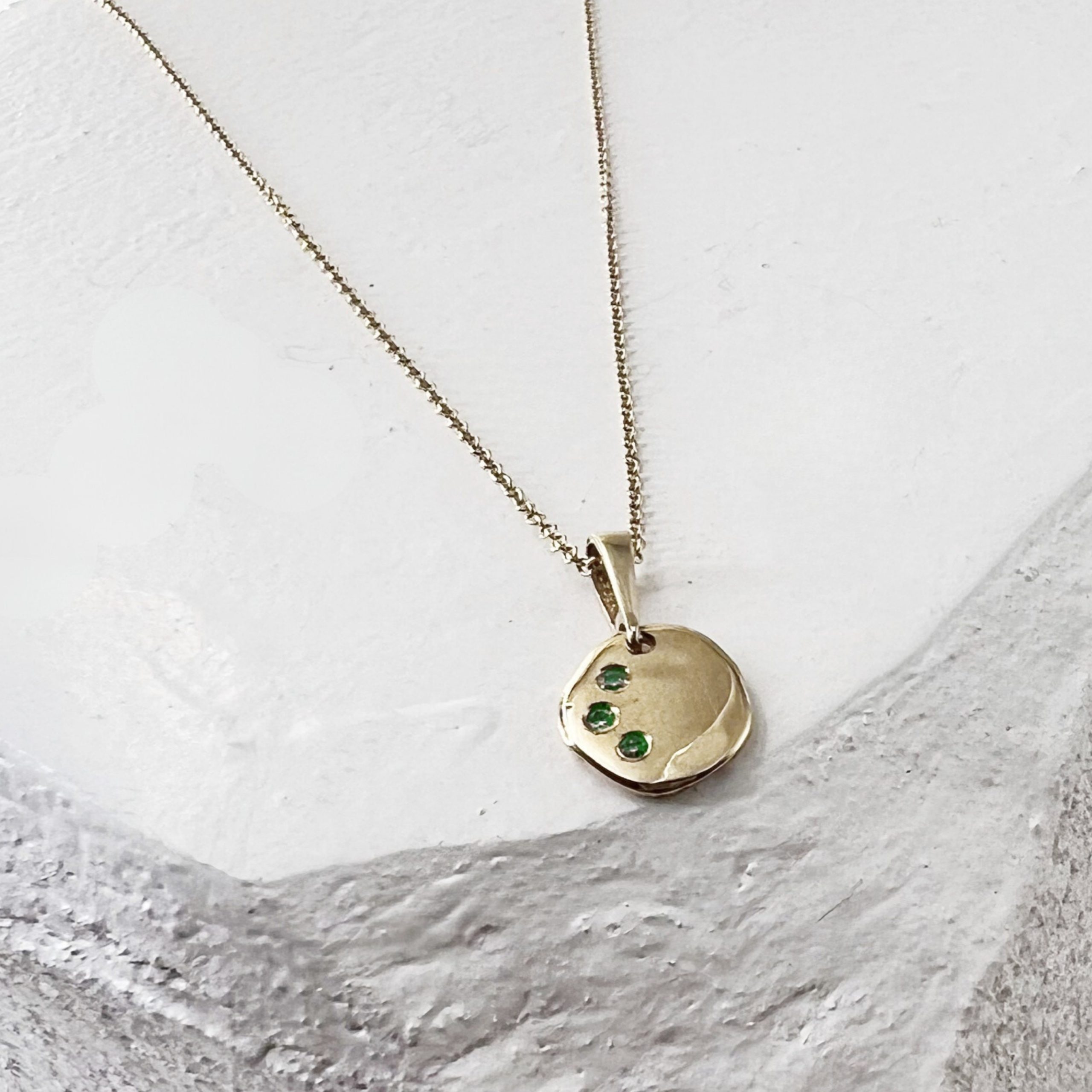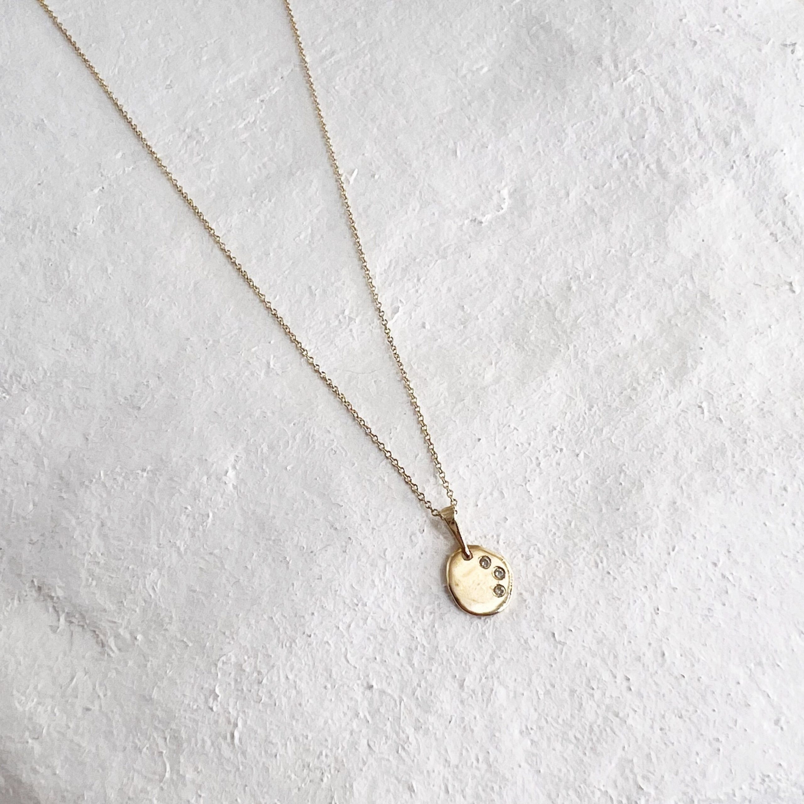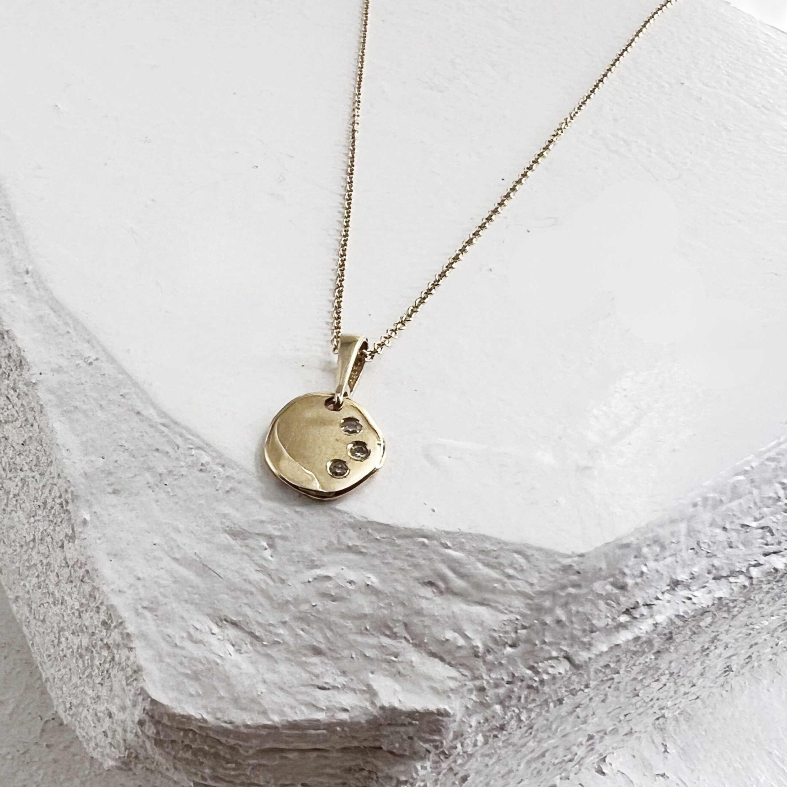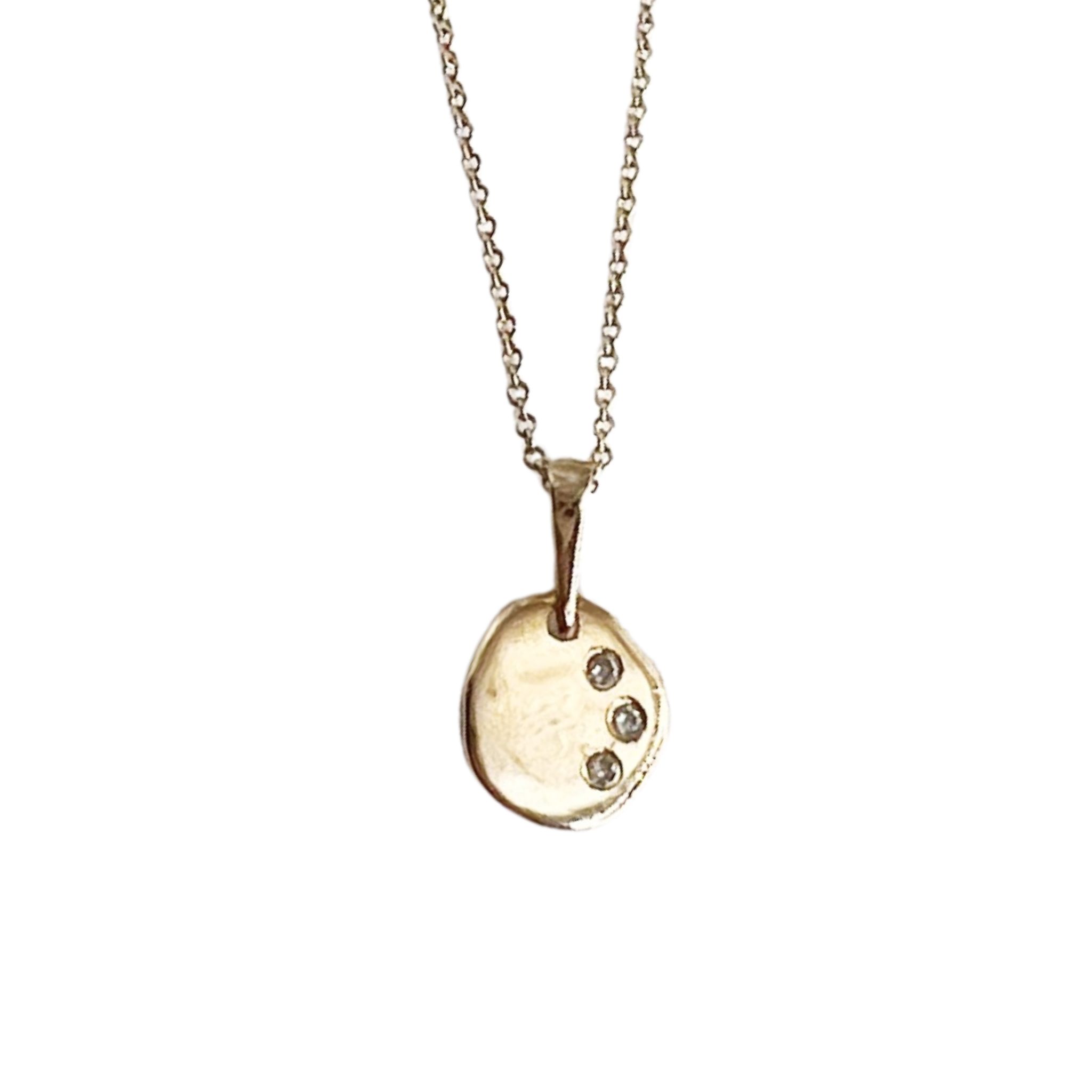 שרשרת אתנה מלאה בקסם עשויה תליון מטבע אמורפי המיוצר בעבודת יד אחד אחד כך שכל אחד שונה,עם שלוש אבנים משובצות לבחירה : יהלומים לבנים, יהלומים שחורים ,אבני אמרלד.
