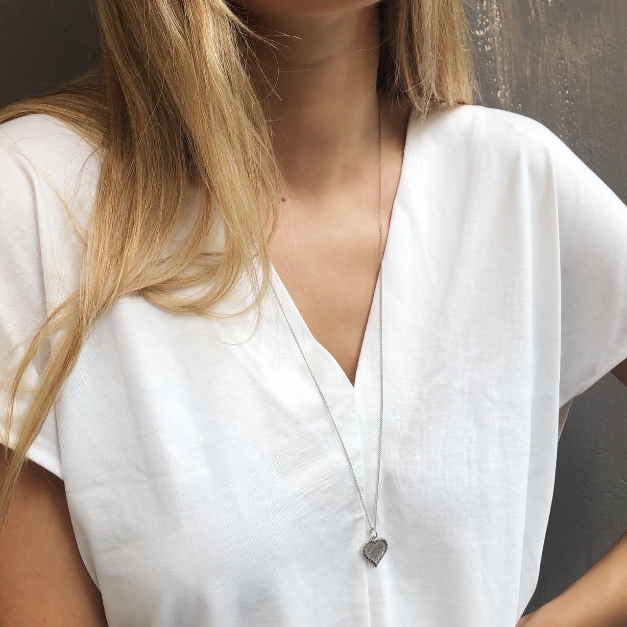 אורך השרשרת 80 ס”מ ועליה תליון של לב בגודל 1.7 ס”מ.