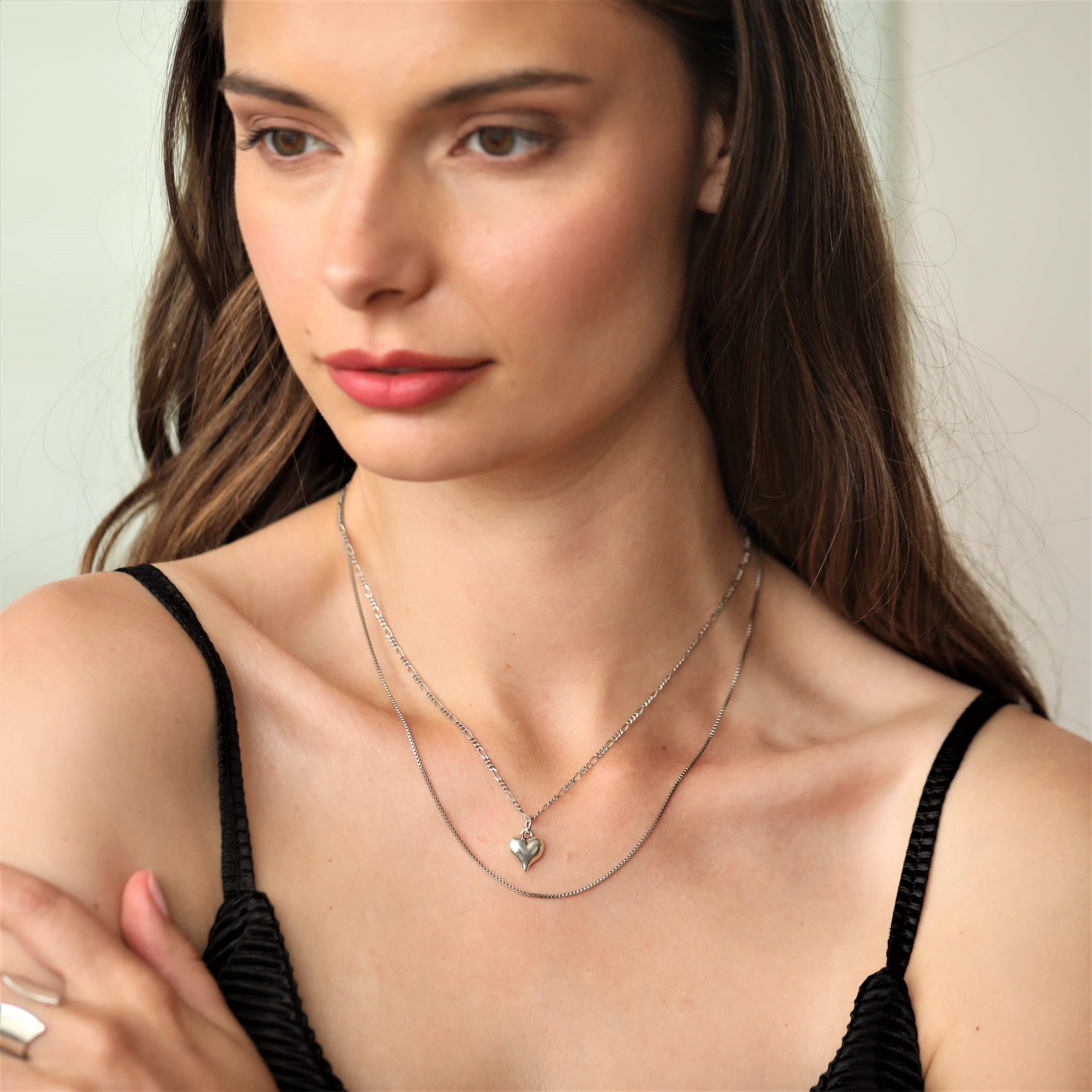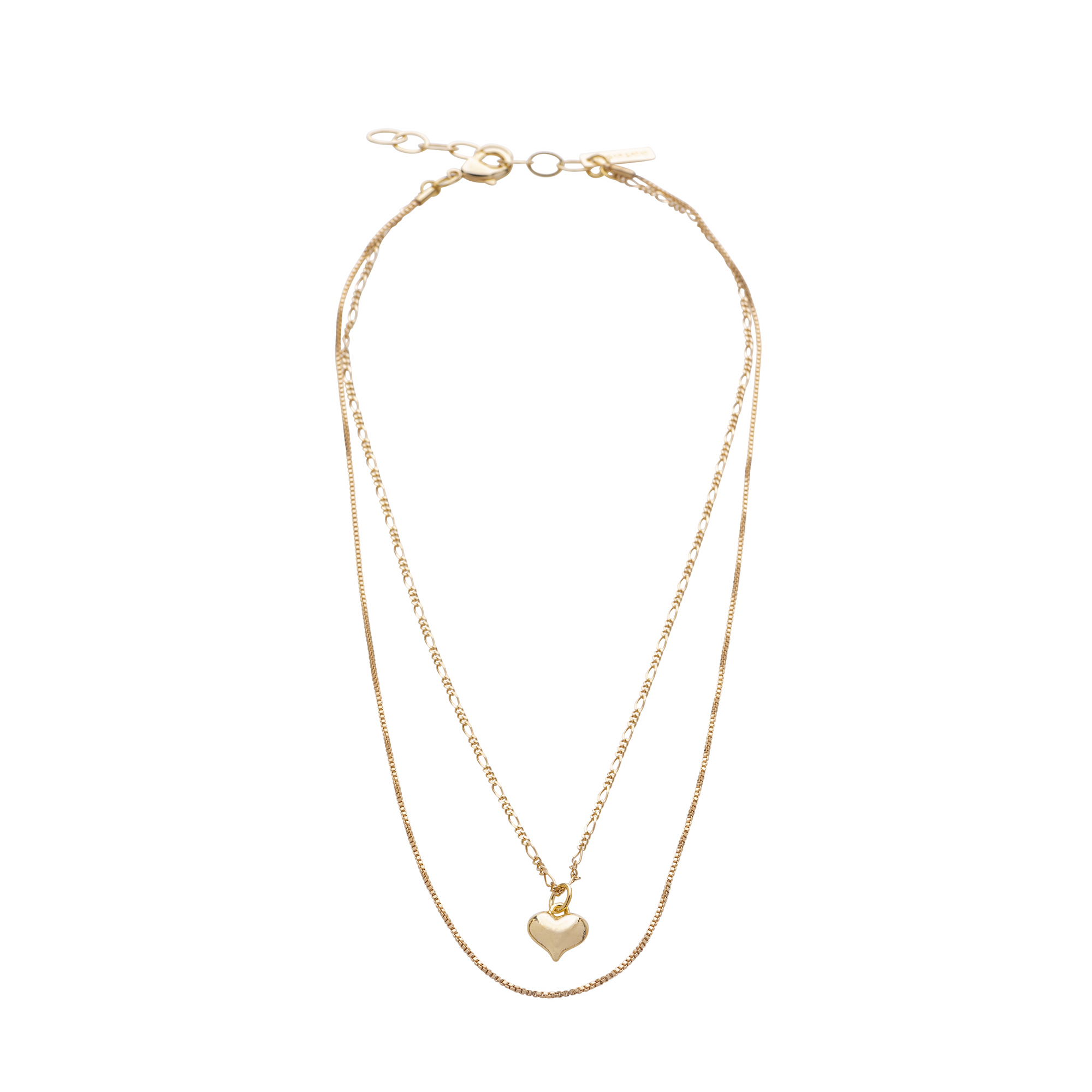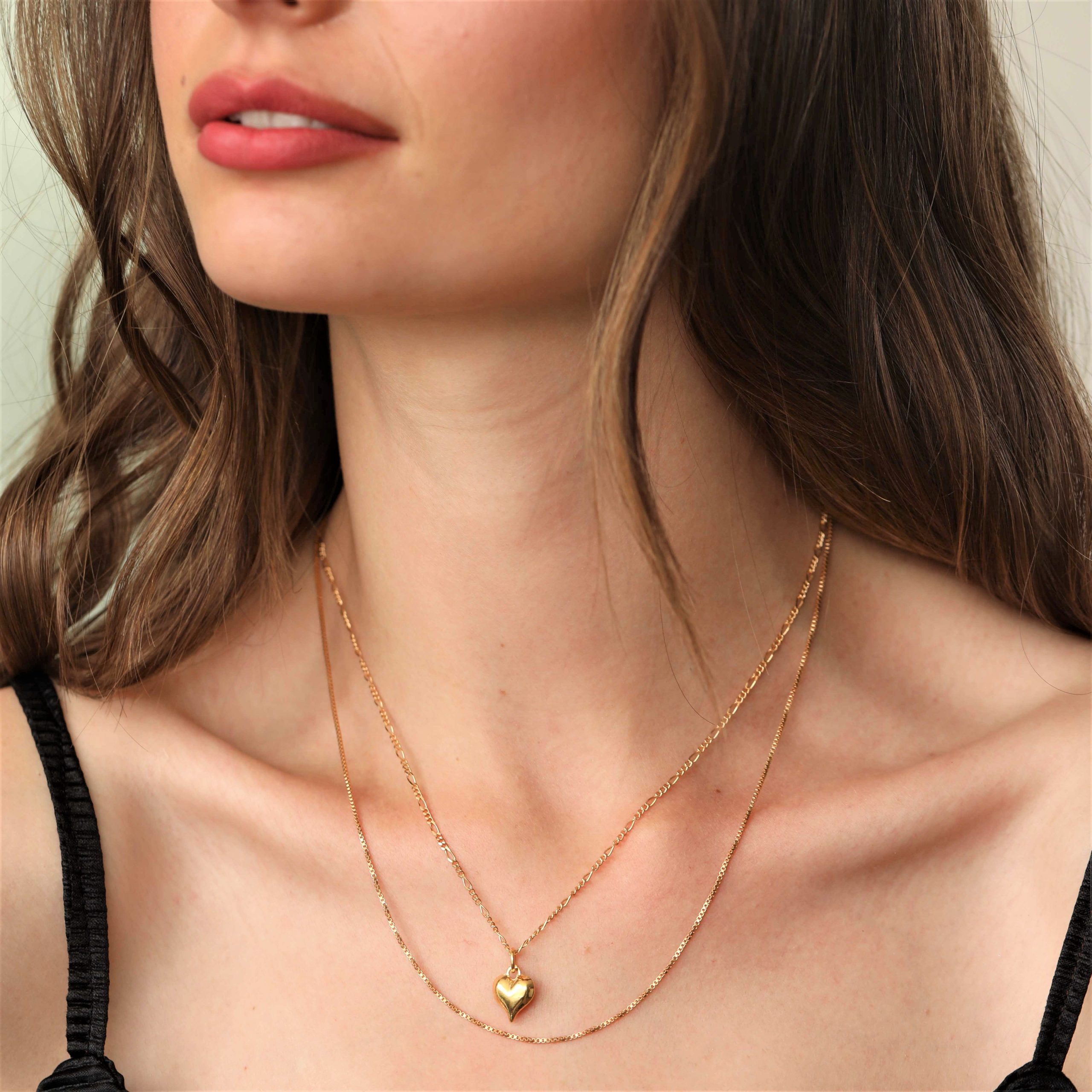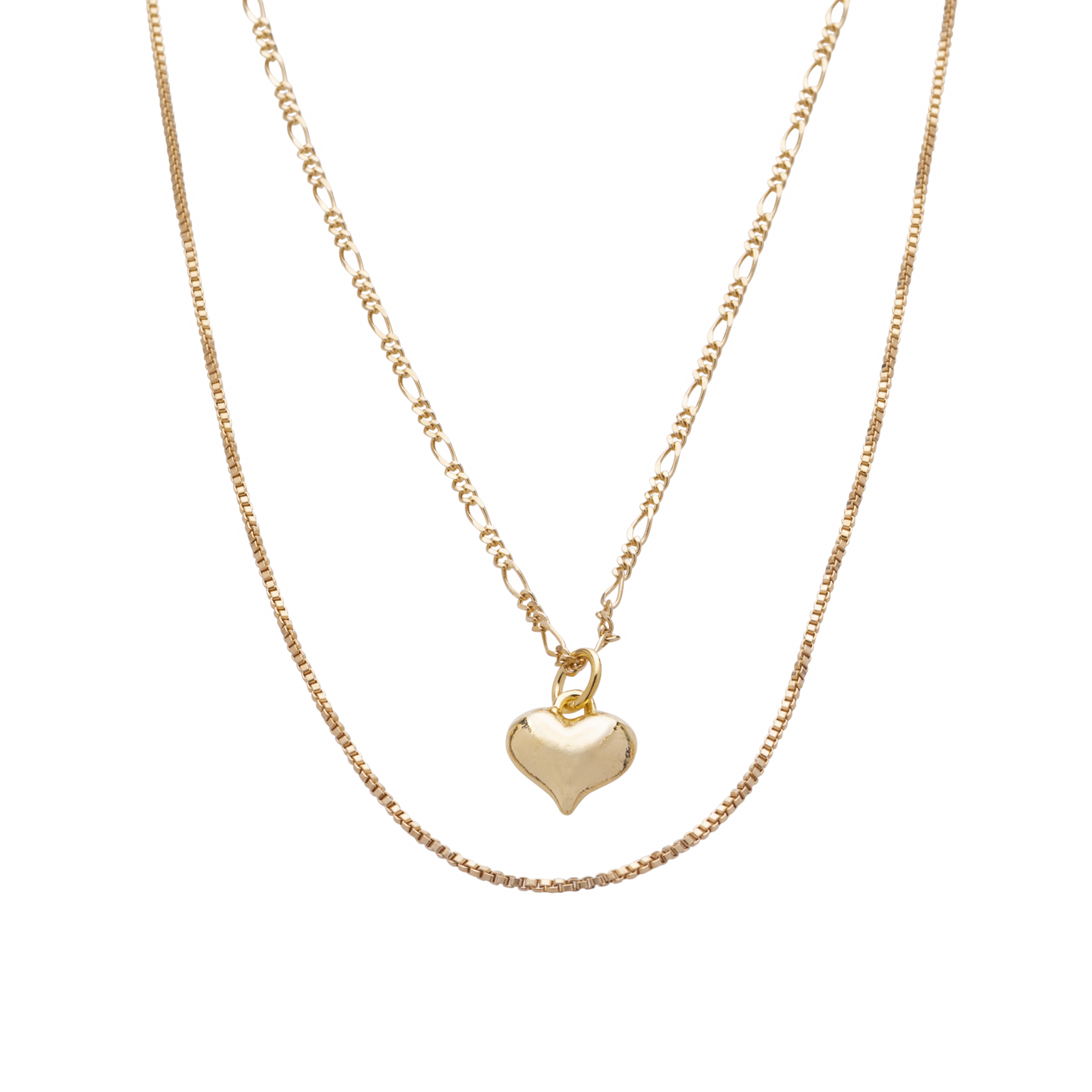 שרשרת עם שתי שכבות , שתי שרשראות עדינות בציפוי זהב 24 קראט בגוון מט או בציפוי כסוף בגוון מט עם תליון לב תלת מימדי מקסים באותו ציפוי.
