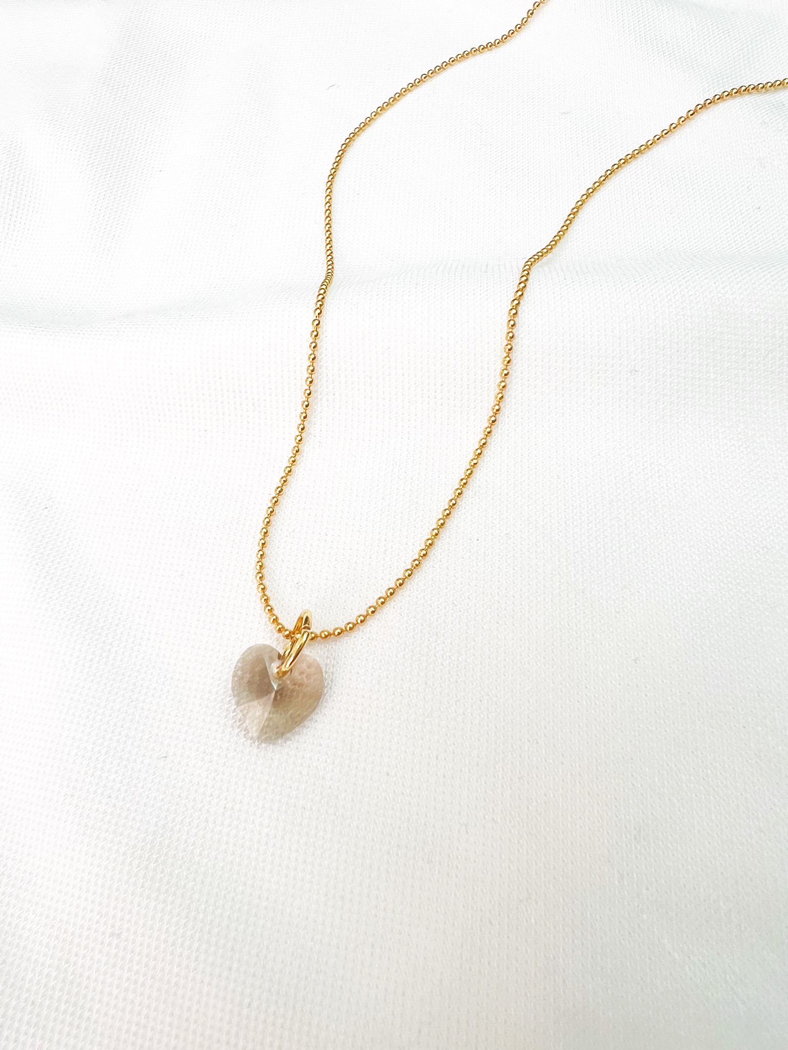 שרשרת מקסימה עשויה שרשרת דסקית עדינה מצופה זהב 24 קראט עמיד ואיכותי משולבת עם תליון סברובסקי בצורת לב מקסים ואיכותי.