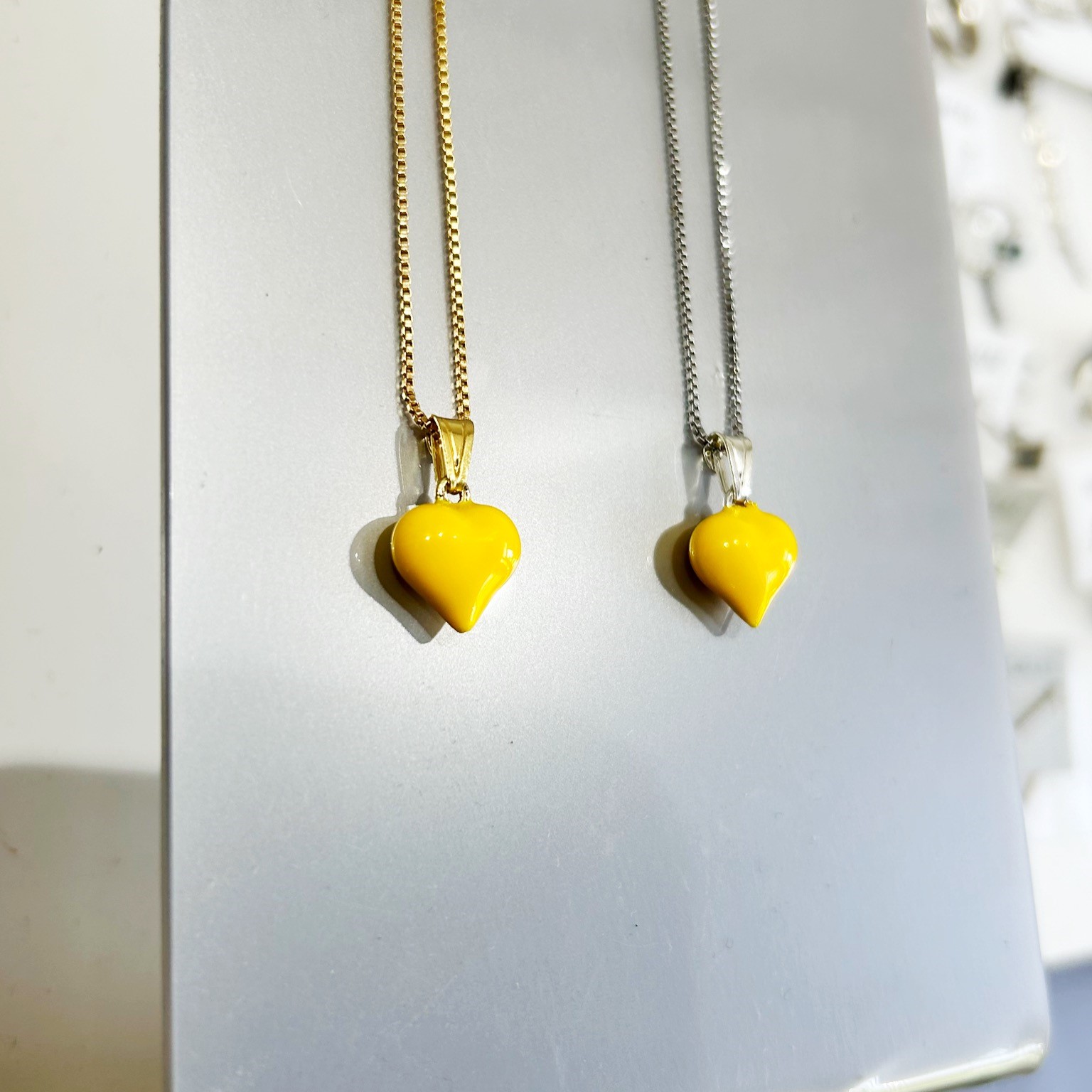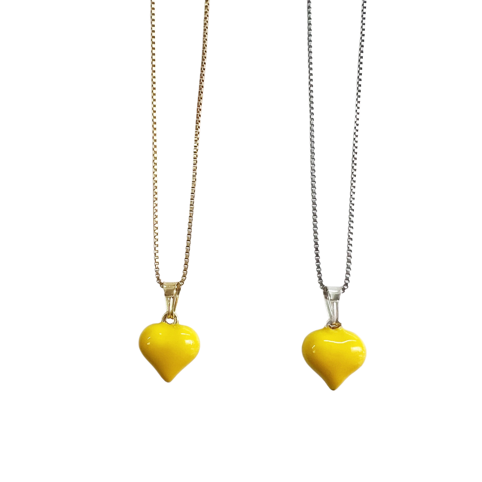 כסף – שרשרת בציפוי רודיום עמיד ואיכותי עם תליון לב מכסף אמיתי ואמייל צהוב.