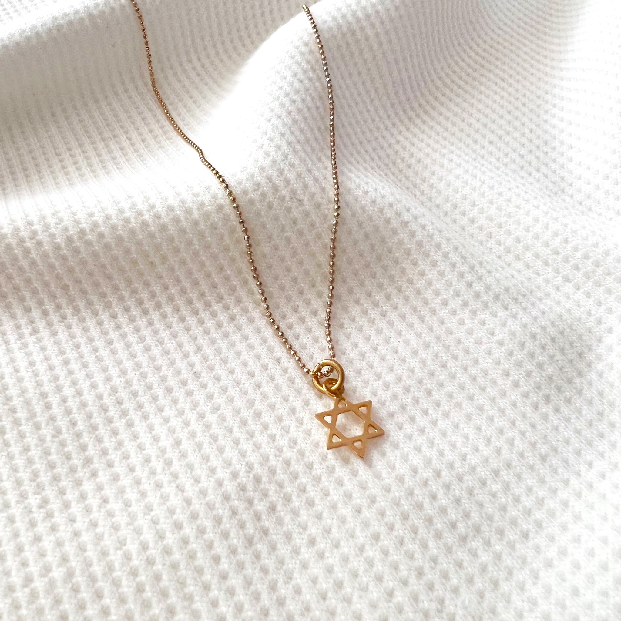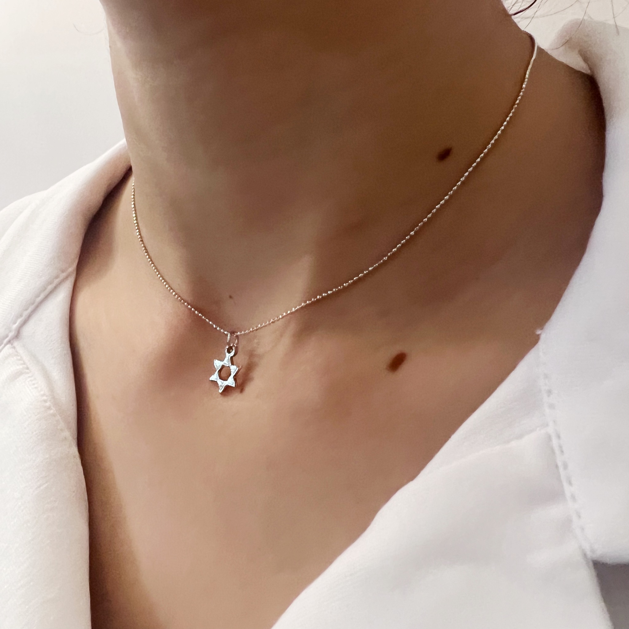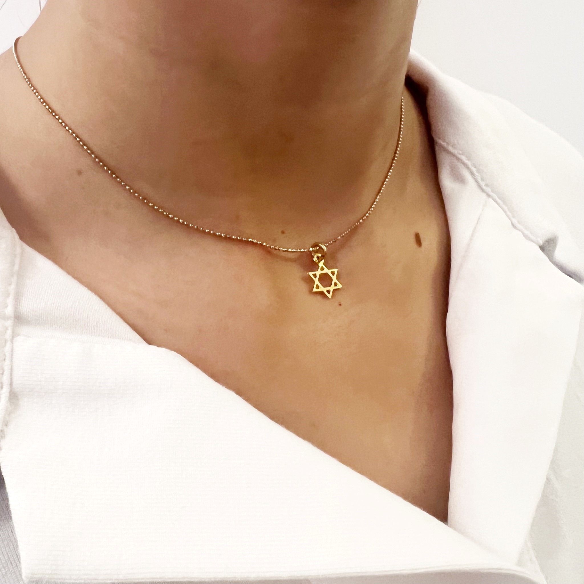 השרשרת עשויה שרשרת דסקית עדינה בציפוי זהב 24 קראט או בציפוי כסוף משולבת עם תליון מגן דוד עדין ויפה.