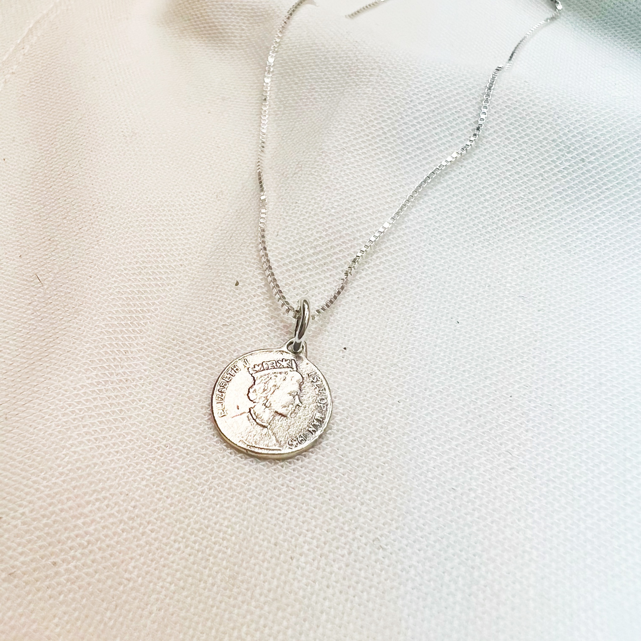 שרשרת כסף עדינה עם תליון מטבע מקסים בגודל כ 1 ס”מ .