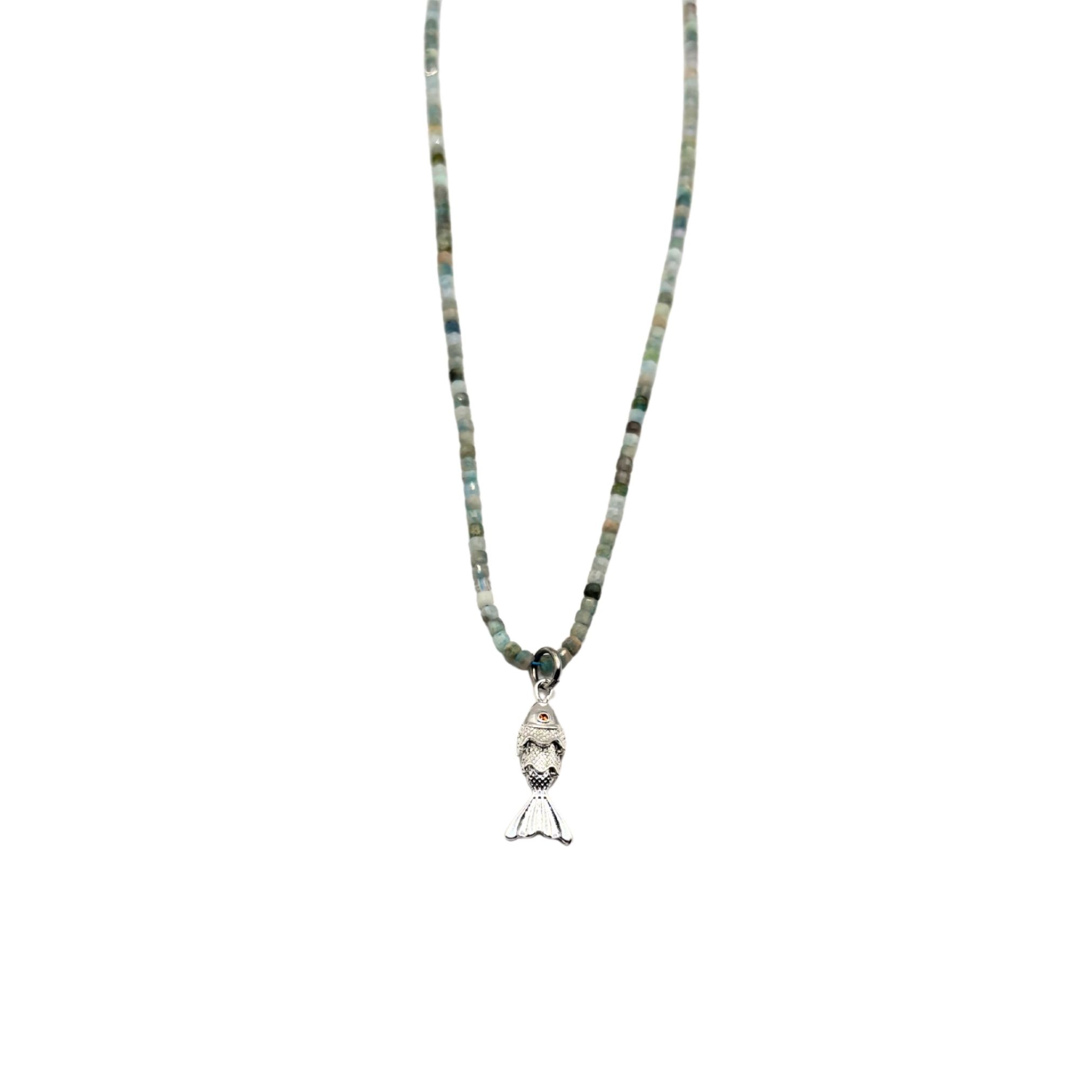 שרשרת חרוזי אבן טבעית אמזונייט בגווני תכלת או אדום.