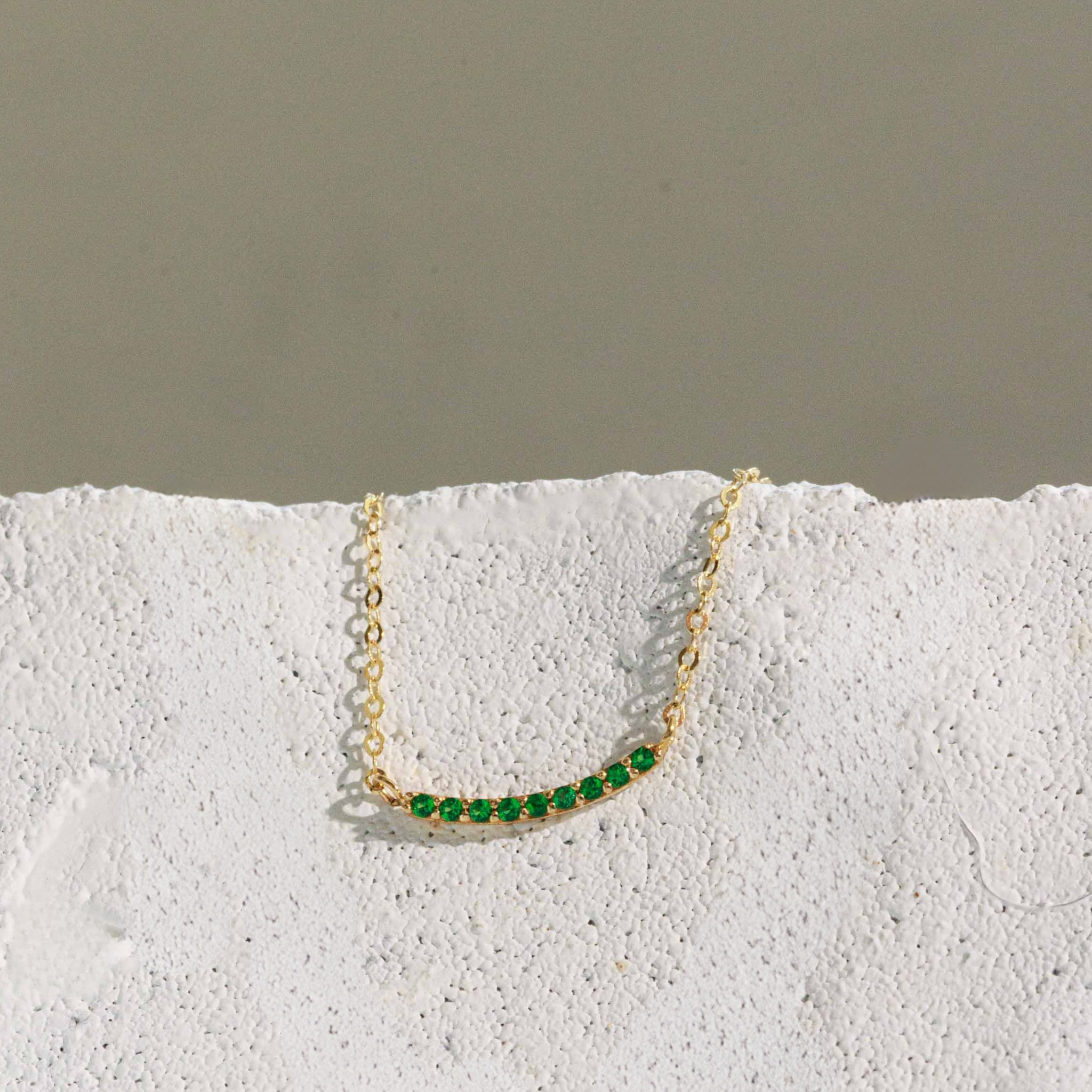 תליון חצי סהר דקיק ואלגנטי, משובץ אבני זירקוניה קטנטנות בארבעה צבעים לבחירה – כל אחת מוסיפה את הטאצ’ הייחודי שלך.