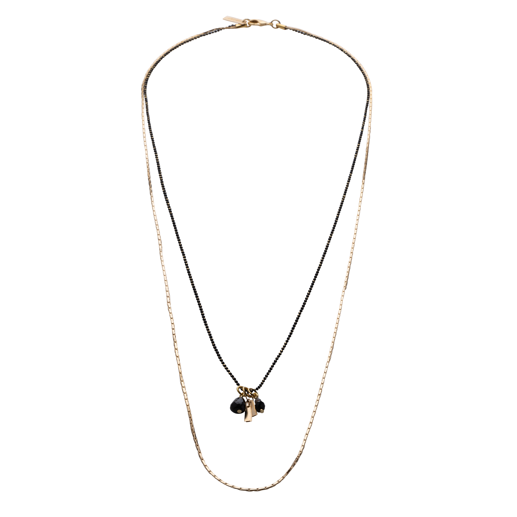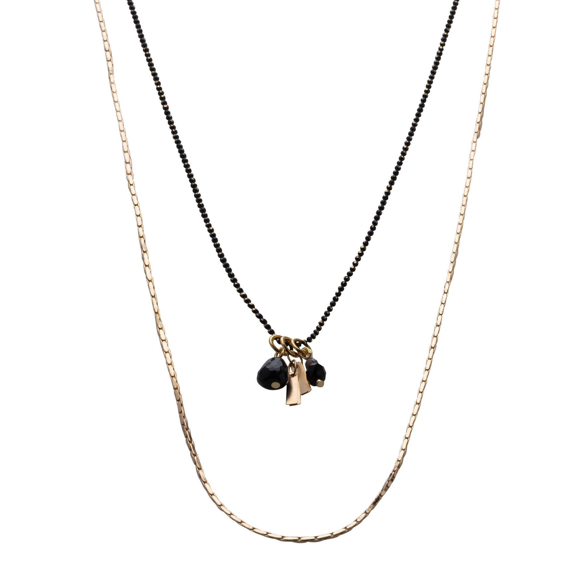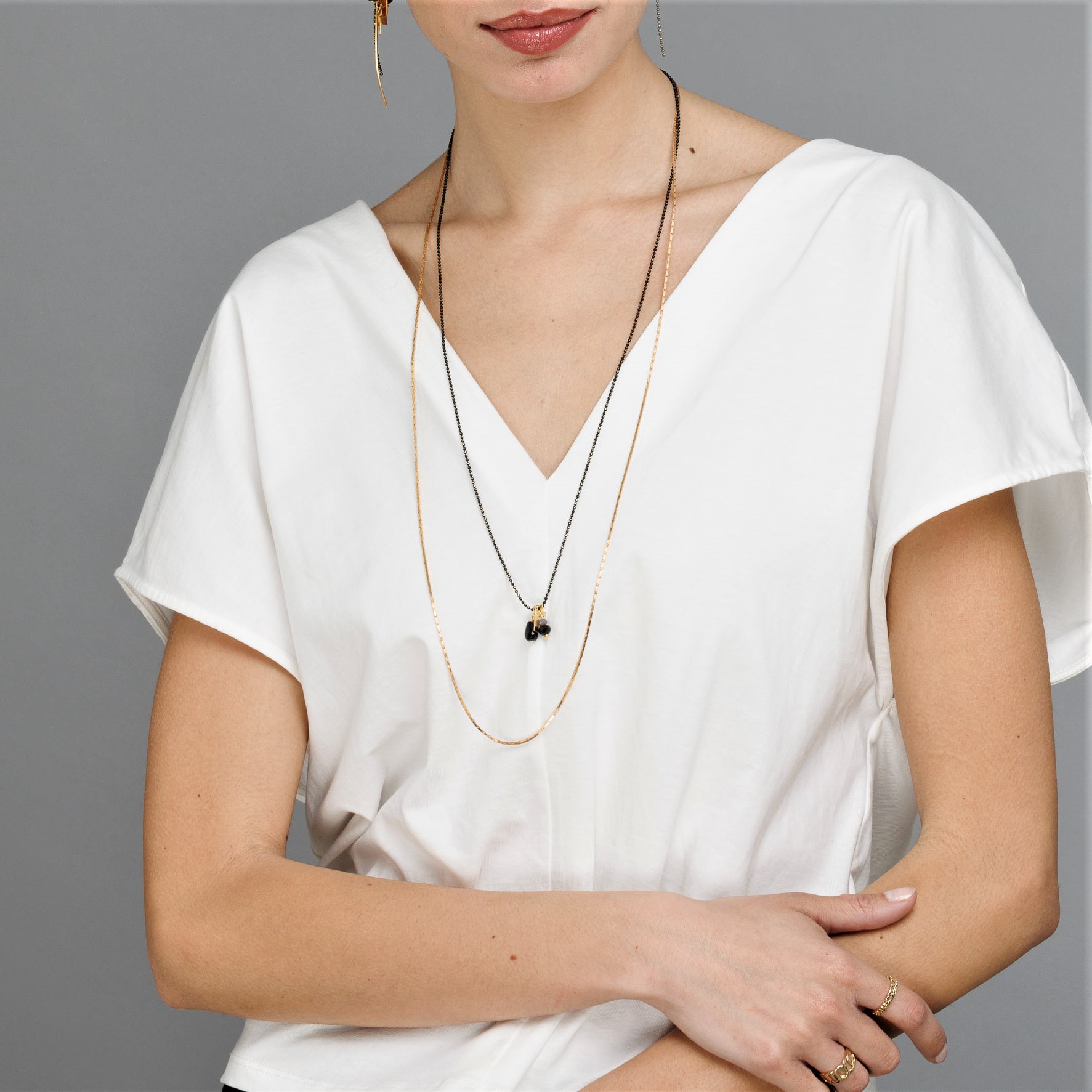 שכבה ראשונה שרשרת דיסקית עדינה בשחור או בירוק ( בהתאם לבחירה) אליה מחוברים תליונים בשילוב אבני חן.